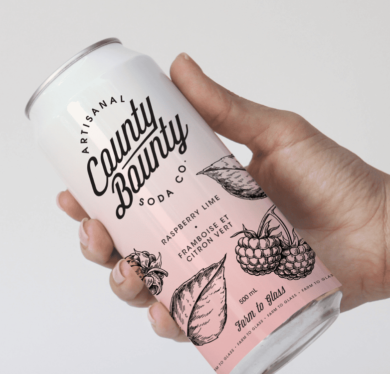 Updating the County Bounty brand wasn’t just about creating a more visually appealing can — it was about crafting an identity that resonates with the true quality of the product. County Bounty Soda Co. has always been a standout in terms of flavour and ingredient quality, but its logo and branding didn’t fully reflect the artisanal care and farm-to-glass philosophy that make it so special.