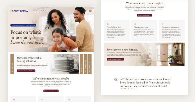 HVAC customers usually visit your site with a specific problem: no heat, no cooling, or an upcoming system replacement. In these moments, visitors aren’t browsing — they’re deciding who to call.