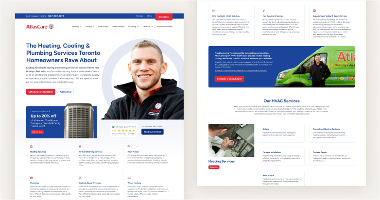 In the Canadian HVAC market, homeowners want assurance that the company they hire is reliable, professional, and accountable. Incorporating reviews, certifications, badges, before-and-after images, warranties, staff bios, and FAQs shows your business is credible, skilled, and trustworthy.