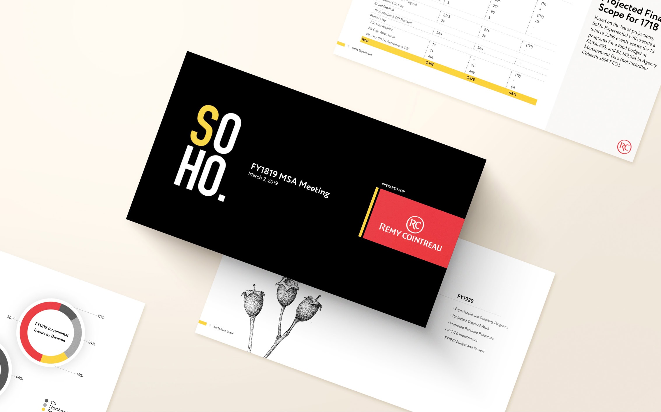 SoHo required a meticulously crafted, on-brand pitch deck for a crucial corporate meeting with Rémy Cointreau. We delivered a presentation that not only met these criteria but also showcased the unique blend of sophistication and innovation that defines SoHo's identity, leaving a lasting impression on Rémy Cointreau's discerning audience.